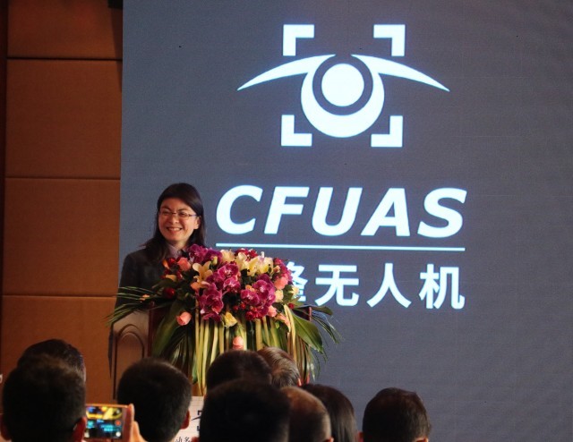 投資人現場為發布的無人機揭幕