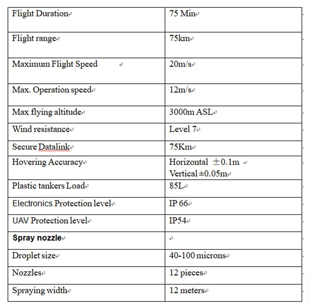 dual antenna direction finding technology, and centimeter-level radar height measurement technology. It has the characteristics of large load capacity, accurate spraying, high positioning accuracy, anti-geomagnetic interference, terrain-like flight and fully autonomous operation, etc., which can greatly improve operating efficiency. , Reduce operating costs.